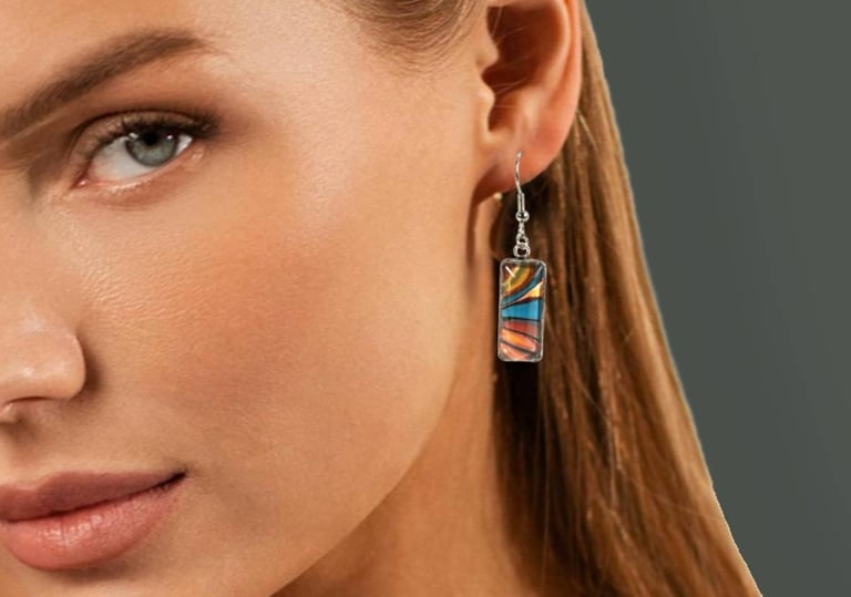 Delicate yet striking, these handcrafted earrings showcase abstract fluid art made from recycled paint, sealed beneath smooth glass. Each pair is a miniature masterpiece, offering a unique pop of colour and creativity.