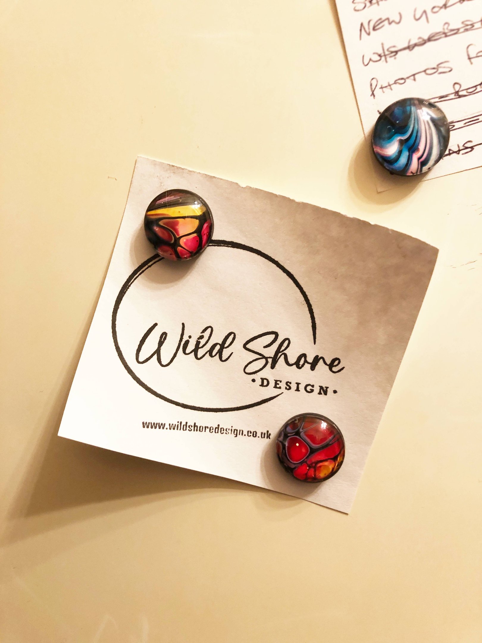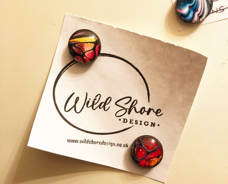 Turn everyday spaces into artful displays with these handcrafted glass magnets. Featuring vibrant abstract fluid art created from recycled paint, each piece is a small but striking way to bring artistic flair to your home or office.