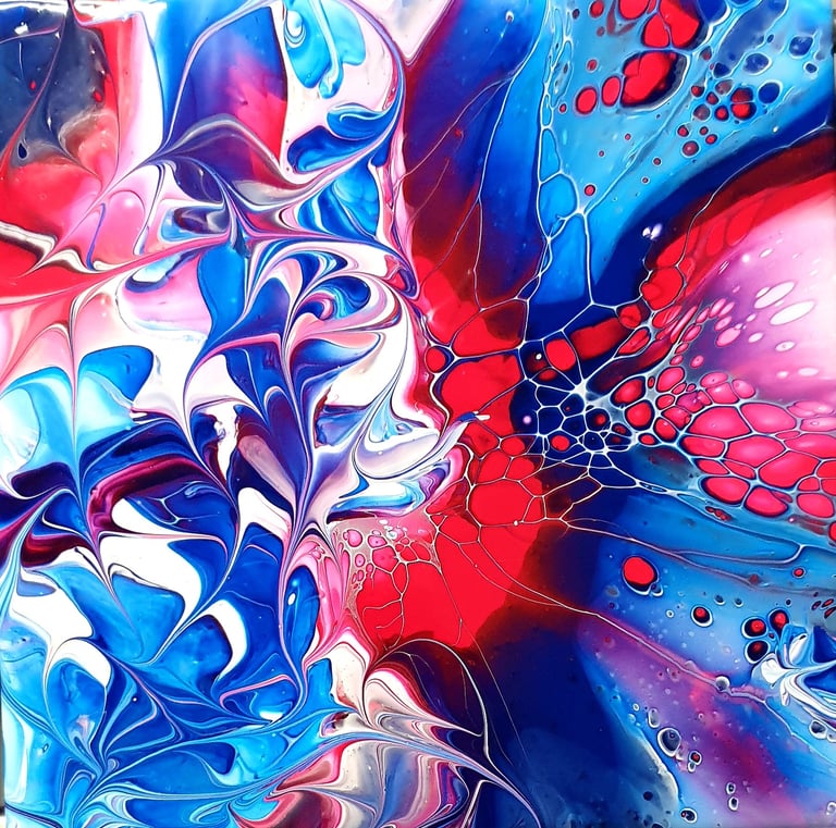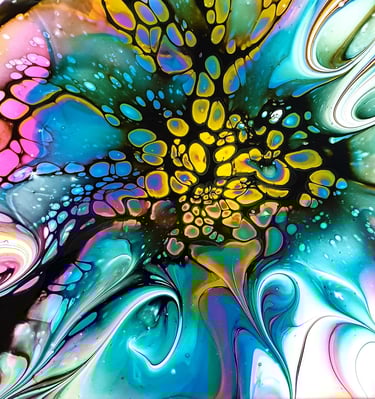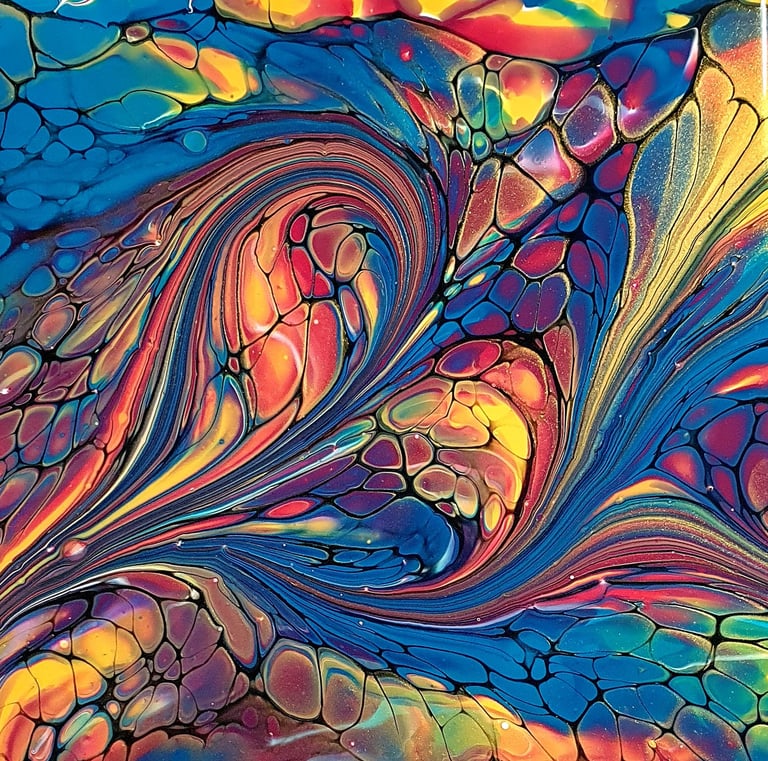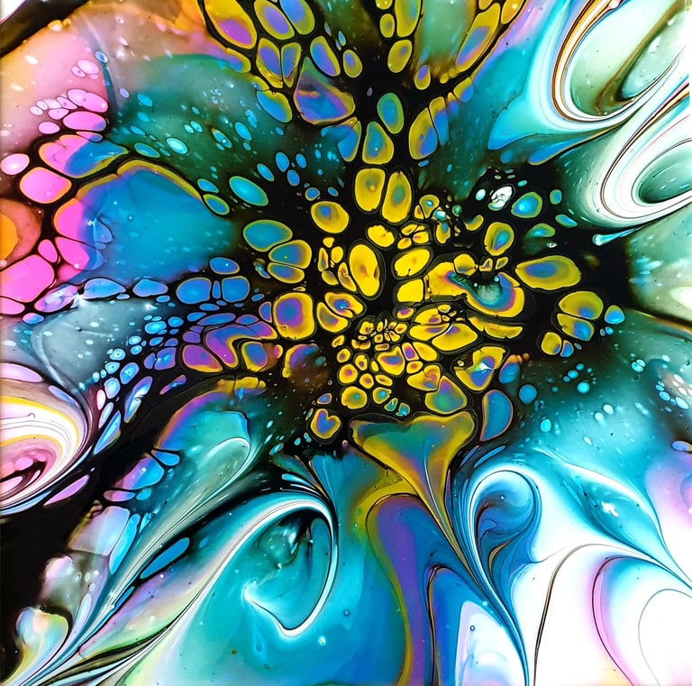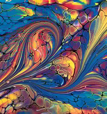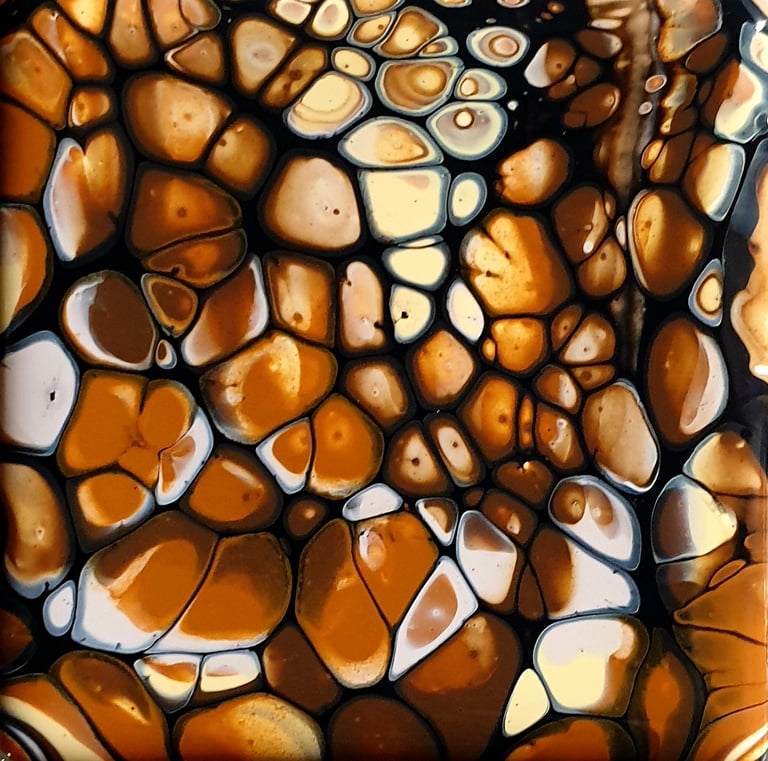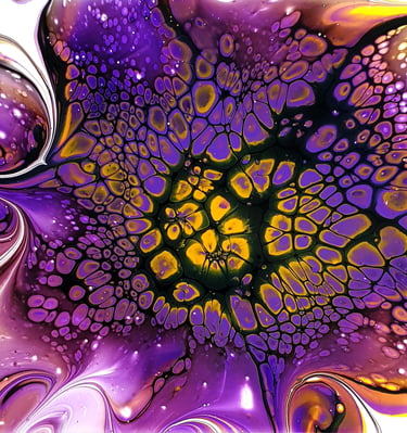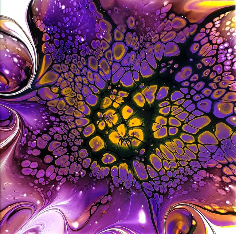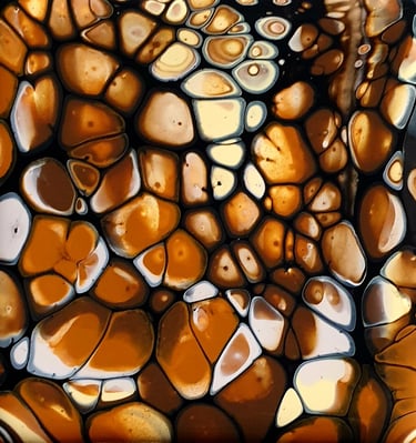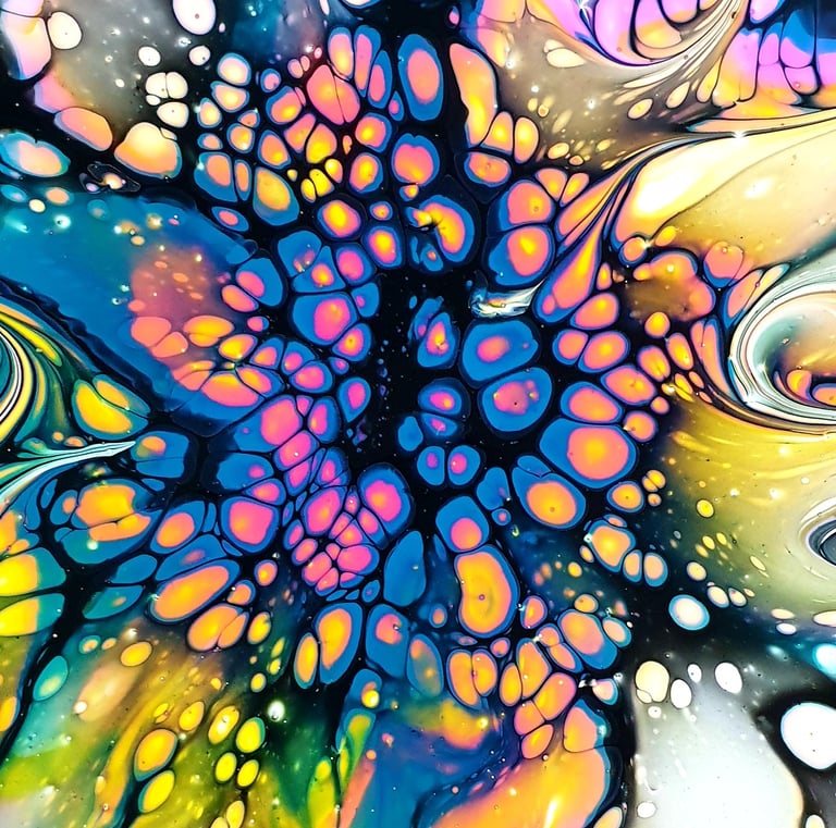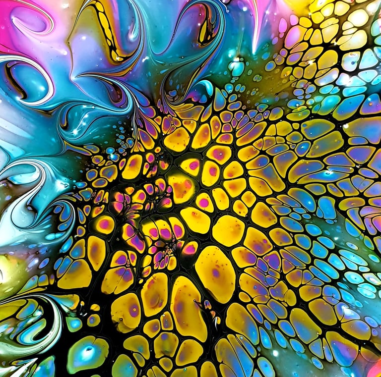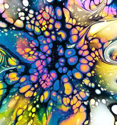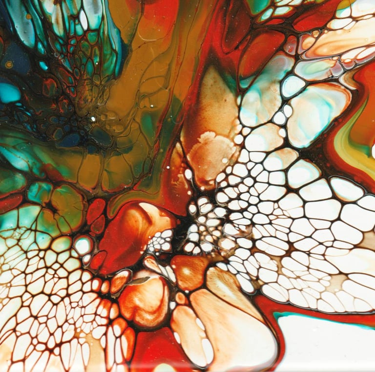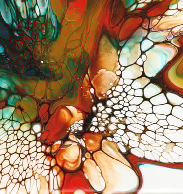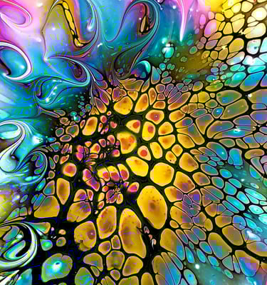 Explore vibrant abstract pieces with mesmerizing cells by Paula Wild.